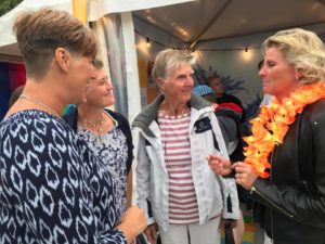 Barbro Westerholm pratar med besökare.